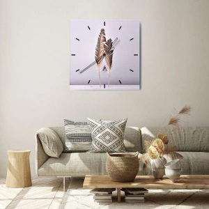 Wanduhr - Glasuhr - Ein elegantes Motiv aus goldenen Federn auf hellem Hintergrund - 30x30cm - Gegen das Nichts - Moderne Wanddekoration für Wohnzimmer, Küche und Schlafzimmer ARTTOR