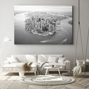 Bild auf Leinwand - Leinwandbild - Luftaufnahme von Manhattan in Schwarzweiß - 50x70cm - Und wie kann es man nicht lieben? - Moderne Wanddekoration für Wohnzimmer und Schlafzimmer ARTTOR