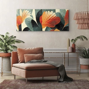 • Botanik, Boho, Grunge, Botanik, Blumen, Kunst, Für das Büro, für das Arbeitszimmer, für das Esszimmer, für den Flur, für das Wohnzimmer, für das Schlafzimmer, Orange, Grün, Quadrat