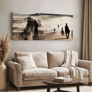 Die Leinwand wird über den Rahmen gespannt. Die Seiten und Kanten werden gedruckt, um das Bild fortzusetzen. Das Bild ist fertig zum Aufhängen an der Wand. Jedes Produkt hat einen am Rahmen befestigten Anhänger und ein Montageset (Schraube + Stift).