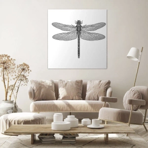 Bild auf Leinwand - Leinwandbild - Schwarz-weiße Zeichnung einer Libelle auf weißem Hintergrund im minimalistischen Stil - 50x70cm - Präzision der Natur - Moderne Wanddekoration für Wohnzimmer und Schlafzimmer ARTTOR