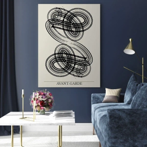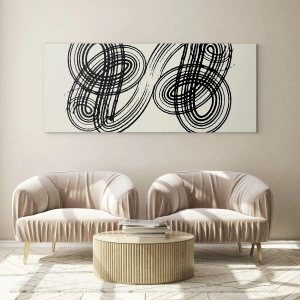 Glasbild - Bild auf glas - Schwarze avantgardistische Schleifen und Linien auf hellem Hintergrund - 70x50cm - Es kam spontan heraus - Moderne Wanddekoration für Wohnzimmer und Schlafzimmer ARTTOR
