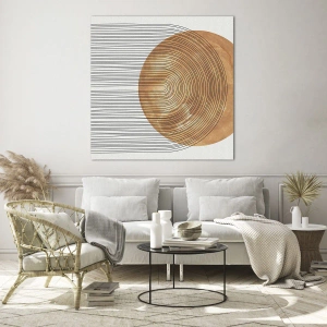 Glasbild - Bild auf glas - Geometrische Form mit konzentrischen Linien und einem goldenen Kreis - 70x50cm - SonnenKomposition - Moderne Wanddekoration für Wohnzimmer und Schlafzimmer ARTTOR