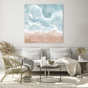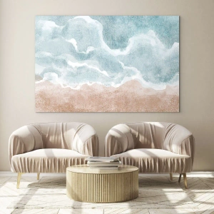 Glasbild - Bild auf glas - Pastellfarbene Wellen in Blau- und Beigetönen erzeugen eine wolkige Abstraktion. - 50x70cm - Cloud-Abstraktion - Moderne Wanddekoration für Wohnzimmer und Schlafzimmer ARTTOR