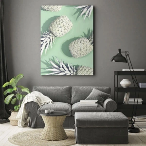 Bild auf Leinwand - Leinwandbild - Weiße Ananas auf pastellfarbenem Hintergrund im minimalistischen Stil - 70x50cm - Das passt gut zu Minze - Moderne Wanddekoration für Wohnzimmer und Schlafzimmer ARTTOR
