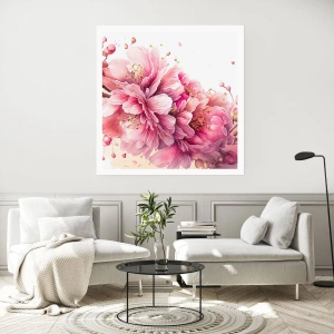 • Blühen, Blume, Aquarell, Botanik, Blumen, Stillleben, Natur, Pastell, Für das Büro, für das Arbeitszimmer, für das Esszimmer, für den Flur, für das Wohnzimmer, für das Schlafzimmer, Weiß, Rosa, Quadrat