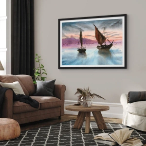 Poster in einem schwarzem Rahmen - Abend am Hafen - 50x40 cm