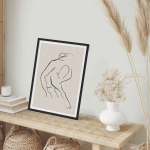 - Das Poster zeigt eine minimalistische Skizze einer weiblichen Silhouette, die mit zarten, fließenden Linien vor einem beigen Hintergrund dargestellt ist. Diese elegante und subtile Komposition eignet sich ideal für moderne Innenräume.