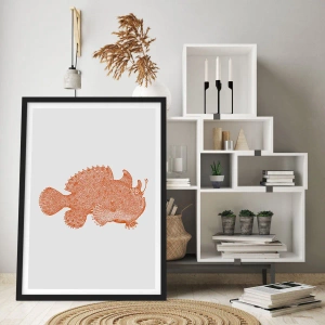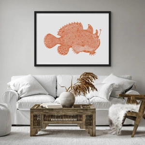 Poster in einem schwarzem Rahmen - Detaillierte Zeichnung eines kupferfarbenen Fisches auf weißem Hintergrund - 70x50cm - Es ist also doch ein Fisch - Moderne Wanddekoration für Wohnzimmer und Schlafzimmer ARTTOR