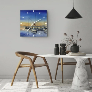 Wanduhr - Glasuhr - Segelboote auf dem Wasser bei Sonnenuntergang in einem ruhigen Hafen - 30x30cm - Ende eines guten Tages - Moderne Wanddekoration für Wohnzimmer, Küche und Schlafzimmer ARTTOR