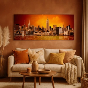 Bild auf Leinwand - Leinwandbild - Das Großstadtpanorama in Gelb und Bronze - 100x40 cm