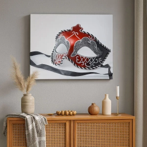 • Venezianische Maske, Venedig, Karneval, Masken, Für das Esszimmer, für den Flur, für das Wohnzimmer, für das Schlafzimmer, Weiß, Schwarz, Rot, Silber, Vertikal