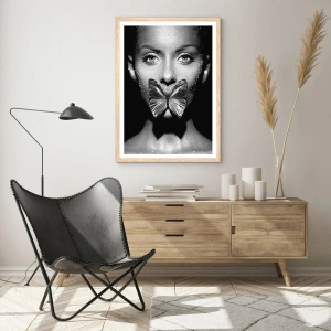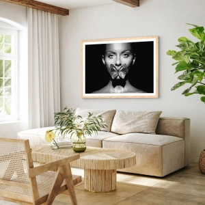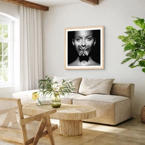 Poster in einem Rahmen aus heller Eiche - Schmetterlingskuss - 40x40 cm