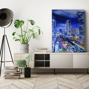Bild auf Leinwand - Leinwandbild - Nachtstadtpanorama mit Wolkenkratzern und Straßenlaternen - 50x70cm - Rhythmen der Nachtstadt - Moderne Wanddekoration für Wohnzimmer und Schlafzimmer ARTTOR
