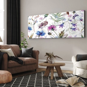 Bild auf Leinwand - Leinwandbild - Aquarellblumen und Kräuter auf weißem Hintergrund im Herbarium-Stil - 70x50cm - Polnisches Herbarium - Moderne Wanddekoration für Wohnzimmer und Schlafzimmer ARTTOR