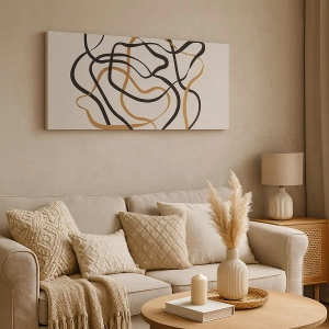 Die Leinwand wird über den Rahmen gespannt. Die Seiten und Kanten werden gedruckt, um das Bild fortzusetzen. Das Bild ist fertig zum Aufhängen an der Wand. Jedes Produkt hat einen am Rahmen befestigten Anhänger und ein Montageset (Schraube + Stift).