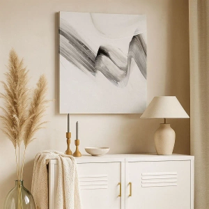 - Dieser Leinwanddruck zeigt einen abstrakten Pinselstrich in Schwarzweiß vor hellem Hintergrund. Perfekt für minimalistische Innenräume, sorgt er für Harmonie und eine stilvolle Note.