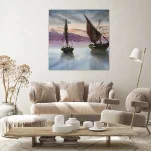 • Dieses Gemälde zeigt zwei Segelboote, die in der Abenddämmerung auf ruhigem Wasser vor Anker liegen. Diese stimmungsvolle Landschaft in Pastelltönen bringt Harmonie und Inspiration in jedes Interieur. Eine perfekte Wahl für Natur- und Kunstliebhaber.