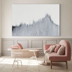 • Ein abstraktes Gemälde in Grautönen, das an eine subtile Notation erinnert. Eine Komposition voller Geheimnis und Eleganz, gehalten in einer minimalistischen und modernen Ästhetik.