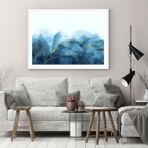 Poster in einem weißen Rahmen - Blau im Gold - 50x70 cm