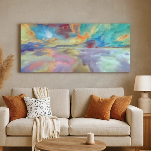 Bild auf Leinwand - Leinwandbild - Bunte Wolkenlandschaft im abstrakten Stil - 120x50cm - Zwei Himmel - Moderne Wanddekoration für Wohnzimmer und Schlafzimmer ARTTOR
