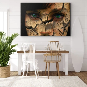 Bild auf Leinwand - Leinwandbild - Das Gesicht einer Frau mit grünen Augen, bedeckt mit einer rissigen Erdstruktur - 70x50cm - Freude und Grauen zugleich - Moderne Wanddekoration für Wohnzimmer und Schlafzimmer ARTTOR
