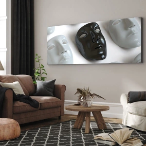 Bild auf Leinwand - Leinwandbild - Schwarz-weiße Masken auf hellem Hintergrund - 70x50cm - Wie hebt man sich ab? - Moderne Wanddekoration für Wohnzimmer und Schlafzimmer ARTTOR