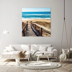 Bild auf Leinwand - Leinwandbild - Holzweg zum Strand - 70x50cm - Lauf! - Moderne Wanddekoration für Wohnzimmer und Schlafzimmer ARTTOR