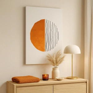 • Abstraktion, Kunst, Minimalismus, Abstraktionen, Für das Büro, für das Arbeitszimmer, für das Esszimmer, für den Flur, für das Wohnzimmer, für das Schlafzimmer, Weiß, Orange, Vertikal
