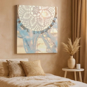 Das Werk wurde auf hochwertiger Leinwand im Querformat 70 x 50 cm erstellt. ARTTOR gewährleistete die Langlebigkeit der Materialien und die präzise Farbwiedergabe, sodass das Gemälde viele Jahre lang mit seiner Schönheit begeistern wird. Jedes Detail wurde sorgfältig ausgearbeitet, um die Zartheit und Harmonie des Traumfängers einzufangen.