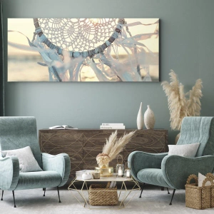 Wählen Sie „Traumfänger und Sonnenuntergang“ als einzigartigen dekorativen Akzent für Ihr Zuhause. Dieses Werk auf Leinwand bringt Subtilität und Harmonie in Innenräume und unterstreicht gleichzeitig den individuellen Charakter des Raumes. Dieses Gemälde ist eine perfekte Mischung aus Ästhetik und Funktionalität und verleiht Innenräumen eine einzigartige Atmosphäre.