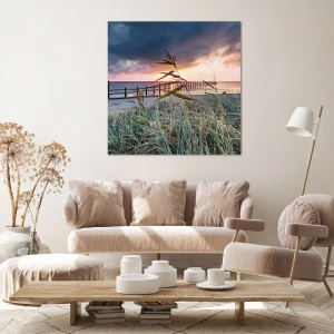 Der Leinwanddruck „It Doesn't Go Away“ zeigt eine wunderschöne Aufnahme eines Strandes bei Sonnenuntergang. Der Vordergrund ist mit zarten Gräsern geschmückt, die in Kombination mit den warmen Farben von Himmel und Meer eine Atmosphäre der Ruhe und Harmonie schaffen. Das gesamte Werk strahlt einen subtilen Charme aus und lädt zu einem Moment der Entspannung ein.