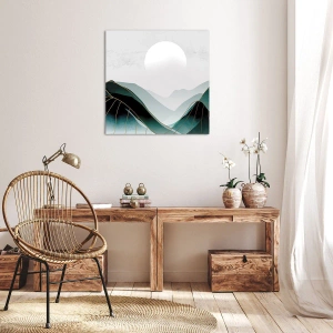 Wir verwenden ökologische, geruchslose und langlebige Tinten mit tiefer Farbsättigung. Durch moderne Drucktechnik wird der Druck präzise platziert, wobei die sichtbare Struktur der Leinwand erhalten bleibt