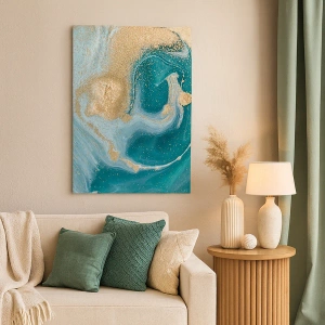 Bild auf Leinwand - Leinwandbild - Ein Strudel aus Gold und Türkis - 45x80 cm