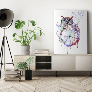 Bild auf Leinwand - Leinwandbild - Bunte Aquarell-Eule im künstlerischen Stil - 70x50cm - Von Natur aus klug - Moderne Wanddekoration für Wohnzimmer und Schlafzimmer ARTTOR