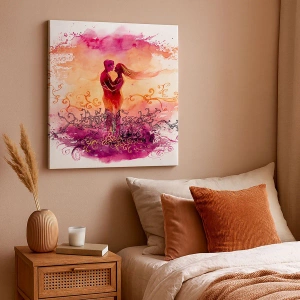 Die Leinwand wird über den Rahmen gespannt. Die Seiten und Kanten werden gedruckt, um das Bild fortzusetzen. Das Bild ist fertig zum Aufhängen an der Wand. Jedes Produkt hat einen am Rahmen befestigten Anhänger und ein Montageset (Schraube + Stift).