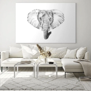 Glasbild - Bild auf glas - Schwarz-weiße Zeichnung eines Elefantenkopfes auf weißem Hintergrund - 70x50cm - Da war ein Elefant, so groß wie - ein Elefant - Moderne Wanddekoration für Wohnzimmer und Schlafzimmer ARTTOR