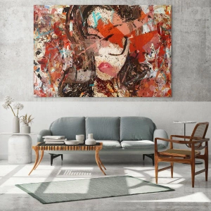 Wandbild – Niemand weiß wirklich, wer du bist – Abstraktes Frauenporträt in Rot- und Beigetönen