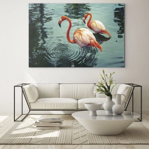Glasbild - Bild auf glas - Flamingos auf dem Wasser in harmonischer Komposition - 50x70cm - Wir sind jetzt in Mode - Moderne Wanddekoration für Wohnzimmer und Schlafzimmer ARTTOR