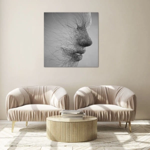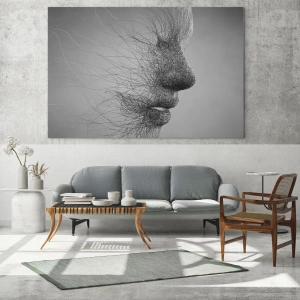 Glasbild - Bild auf glas - Schwarz-weißes abstraktes Gesichtsprofil mit Linien - 50x70cm - Der Geist des Windes - Moderne Wanddekoration für Wohnzimmer und Schlafzimmer ARTTOR