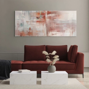 Glasbild - Bild auf glas - Eine abstrakte Komposition in Rot- und Beigetönen. - 50x70cm - Dunstig. Aber rosa - Moderne Wanddekoration für Wohnzimmer und Schlafzimmer ARTTOR