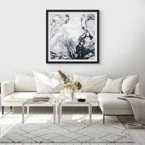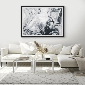 Poster in einem schwarzem Rahmen - Monochromes abstraktes Muster mit Marmoreffekt - 70x50cm - Das Innere der Erde - Moderne Wanddekoration für Wohnzimmer und Schlafzimmer ARTTOR