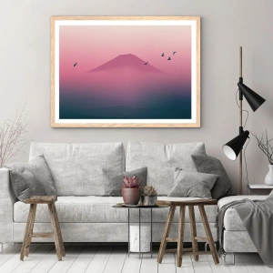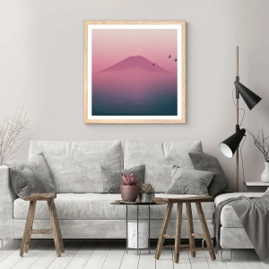 Poster in einem Rahmen aus heller Eiche - Wanderer über den Wolken - 50x50 cm