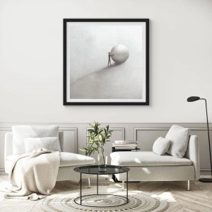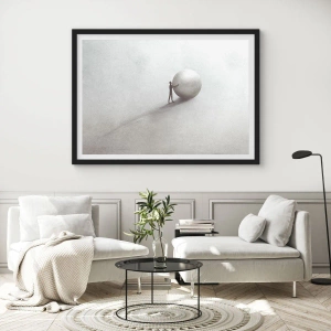 Poster in einem schwarzem Rahmen - Eine minimalistische Figur mit einem großen Ball auf neutralem Hintergrund. - 50x70cm - Das Spiel des Lebens - Moderne Wanddekoration für Wohnzimmer und Schlafzimmer ARTTOR
