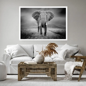 Poster - Ein mächtiger Elefant in der Savanne in monochromen Tönen - 100x70cm - Der Gastgeber heißt willkommen - Moderne Wanddekoration für Wohnzimmer und Schlafzimmer ARTTOR