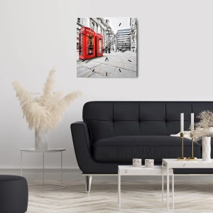 Wanduhr - Glasuhr - Rote Telefonzellen vor dem Hintergrund der Stadtlandschaft - 30x30cm - Willkommen in London - Moderne Wanddekoration für Wohnzimmer und Schlafzimmer ARTTOR