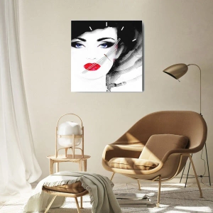 Wanduhr - Glasuhr - Porträt einer Frau mit roten Lippen und intensiven blauen Augen - 30x30cm - Er drückt zurück und ruft an - Moderne Wanddekoration für Wohnzimmer und Schlafzimmer ARTTOR