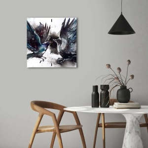Wanduhr - Glasuhr - Künstlerische Raben in einer dynamischen Aquarellkomposition - 30x30cm - Rabe zum Raben ... - Moderne Wanddekoration für Wohnzimmer und Schlafzimmer ARTTOR