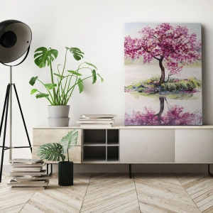 Bild auf Leinwand - Leinwandbild - Ein blühender Baum auf stillem Wasser - 70x50cm - Der Ritus des Frühlings - Moderne Wanddekoration für Wohnzimmer und Schlafzimmer ARTTOR