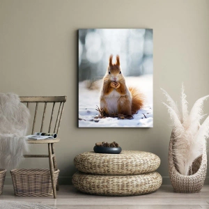 Bild auf Leinwand - Leinwandbild - Ein Eichhörnchen in einer Winterlandschaft - 50x70cm - Wo schaust du hin? - Moderne Wanddekoration für Wohnzimmer und Schlafzimmer ARTTOR
